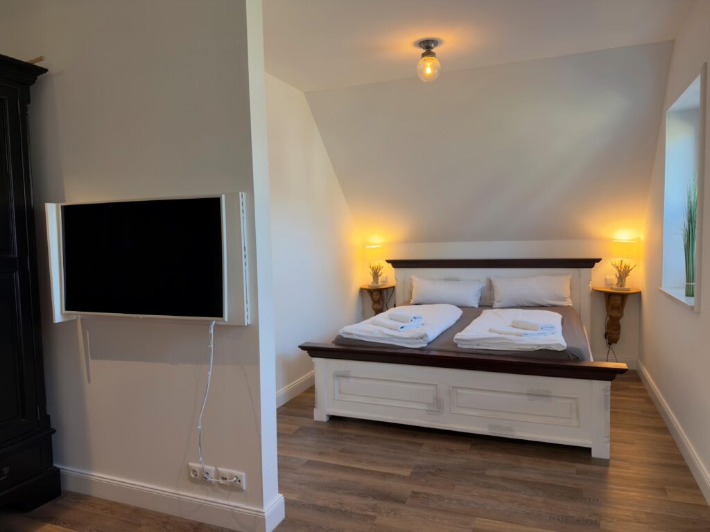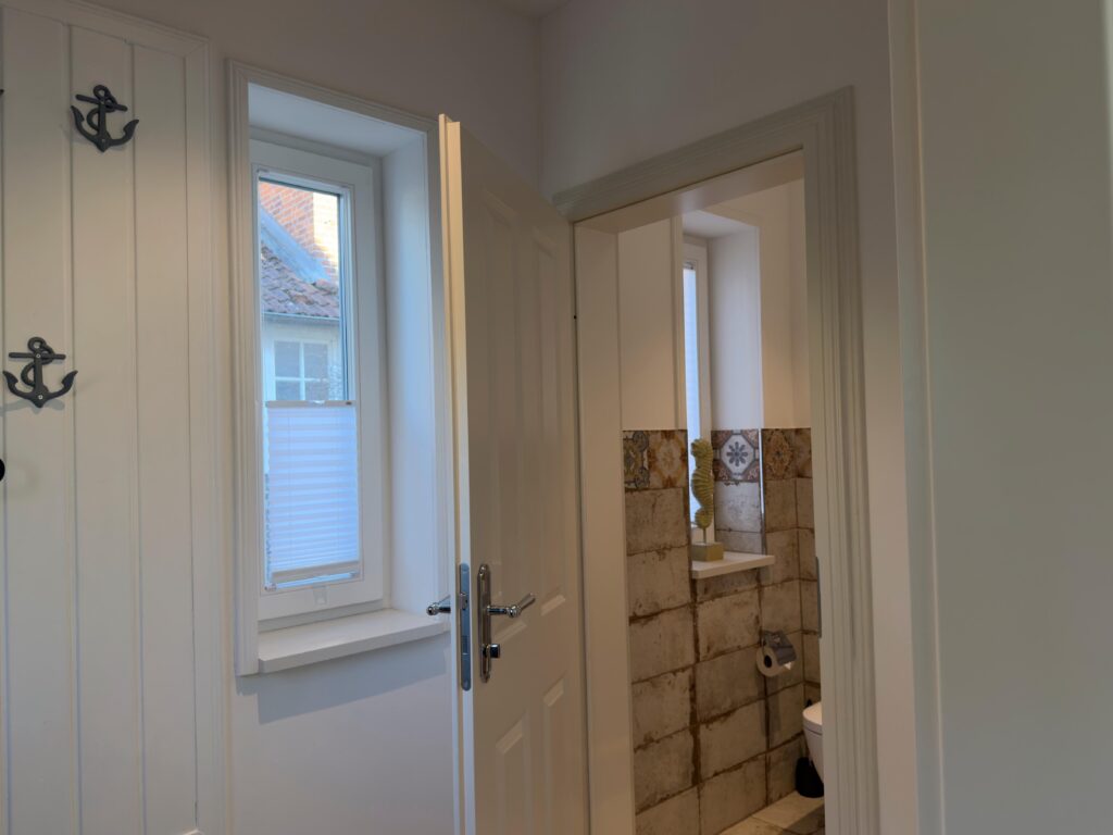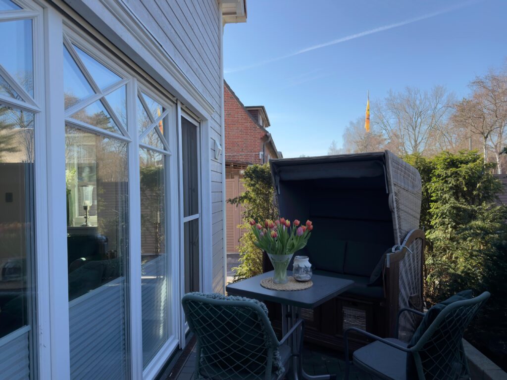 Dieses geschmackvoll eingerichtete 2-Zimmer-Apartment erstreckt sich über das Erdgeschoss und 1. Obergeschoss und bietet auf ca. 55 m² modernen Komfort. Die offene Einbauküche im Erdgeschoss ist mit einem 4-Platten-Ceranfeld, Backofen und Geschirrspüler ausgestattet und geht in das helle Wohn- und Esszimmer über. Im 1. Obergeschoss befindet sich das Schlafzimmer mit Doppelbett und TV sowie ein mod...Weiterlesenernes Duschbad mit Regendusche. Eine kleine Terrasse mit Strandkorb lädt zum Entspannen ein. Das Apartment bietet ein besonders gutes Raumklima und ist daher besonders für Allergiker geeignet. WLAN und ein PKW-Stellplatz direkt am Haus sind ebenfalls vorhanden. Einkaufsmöglichkeit und Bäckersind gegenüber und der Naturstrand ist fußläufig erreichbar.Weniger lesen