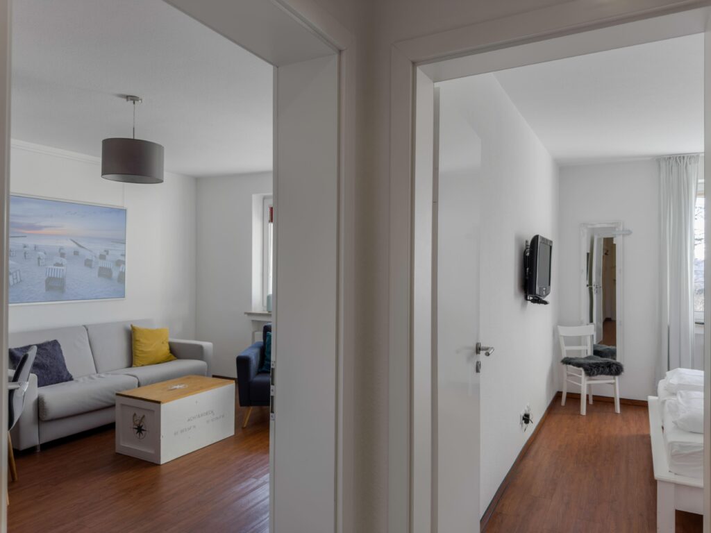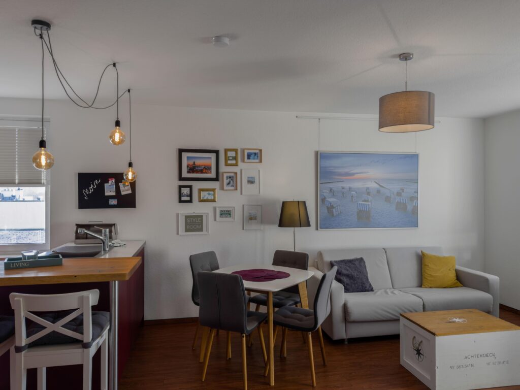 Dieses moderne 2-Zimmer-Apartment im 2. Obergeschoss bietet auf ca. 65 m² komfortablen Raum für einen entspannten Aufenthalt. Es verfügt über ein Schlafzimmer mit Doppelbett (1,80 m) und TV, ein Duschbad sowie eine offene Einbauküche mit allem, was Sie für die Zubereitung von Mahlzeiten benötigen, einschließlich eines 4-Platten-Ceranfelds, Backofen, Dampfgarer, Geschirrspüler, Mikrowelle und einer...Weiterlesen zusätzlichen Padmaschine. Der separate Essbereich und das Wohnzimmer mit Schlafcouch (1,60 m) bieten Platz für zusätzliche Gäste. Weitere Annehmlichkeiten umfassen WLAN, Musikanlage und einen Balkon mit Markise. Für zusätzlichen Komfort stehen Ihnen eine Waschmaschine und ein Trockner im Abstellraum (Münzgeräte) zur Verfügung. Die Wohnung liegt ruhig und ist nur einen kurzen Fußweg vom Strand entfernt.Weniger lesen