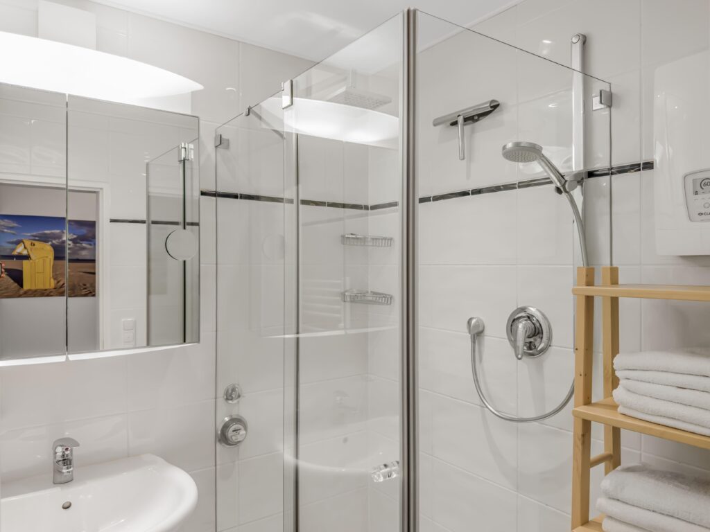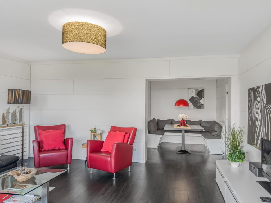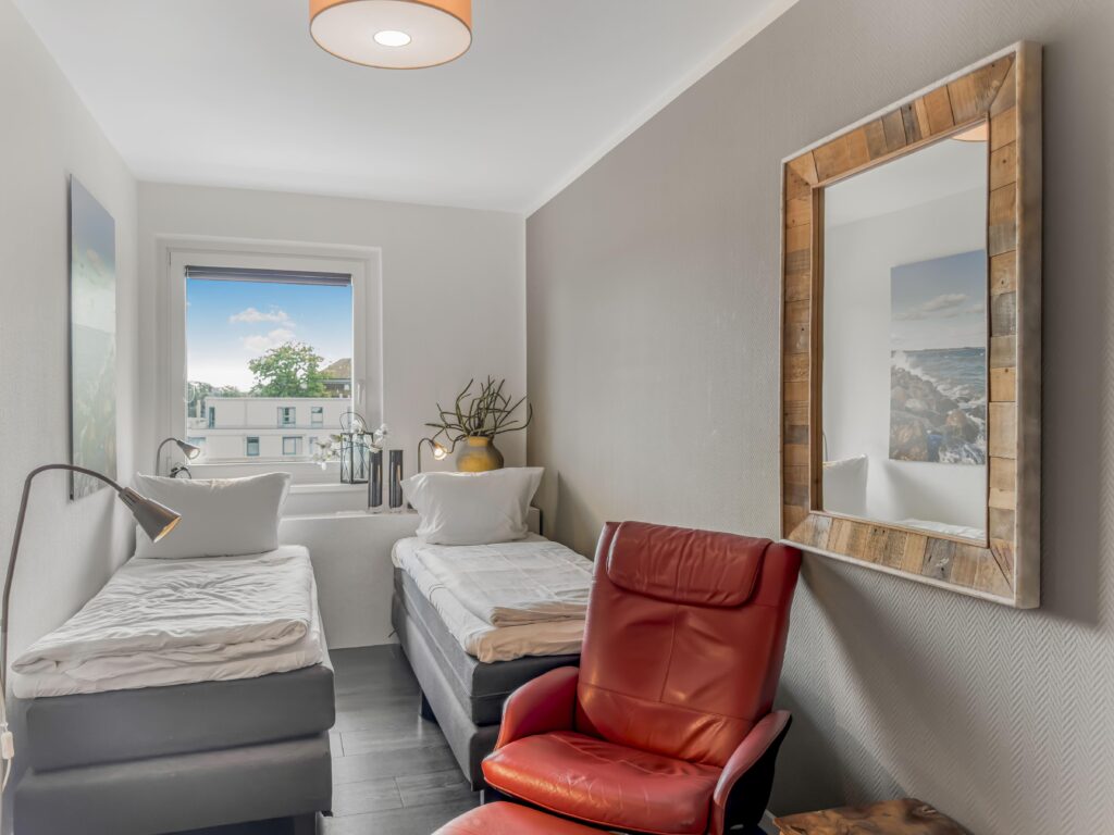 Dieses moderne 3-Zimmer-Apartment im 1. Obergeschoss bietet auf ca. 87 m² viel Platz für einen komfortablen Aufenthalt. Mit zwei Schlafzimmern – eines mit Doppelbett und eines mit zwei Einzelbetten – sowie einer gut ausgestatteten Einbauküche inklusive Backofen, Ceranfeld, Geschirrspüler und Mikrowelle ist es ideal für Familien oder Freunde. Das Wohnzimmer mit TV und Musikanlage lädt zum Entspanne...Weiterlesenn ein, und der Eckbalkon bietet einen schönen Blick auf das Meer. Der Strand liegt direkt auf der anderen Straßenseite, und ein Tiefgaragenstellplatz sowie eine Waschmaschine im Keller sorgen für zusätzlichen Komfort.Weniger lesen