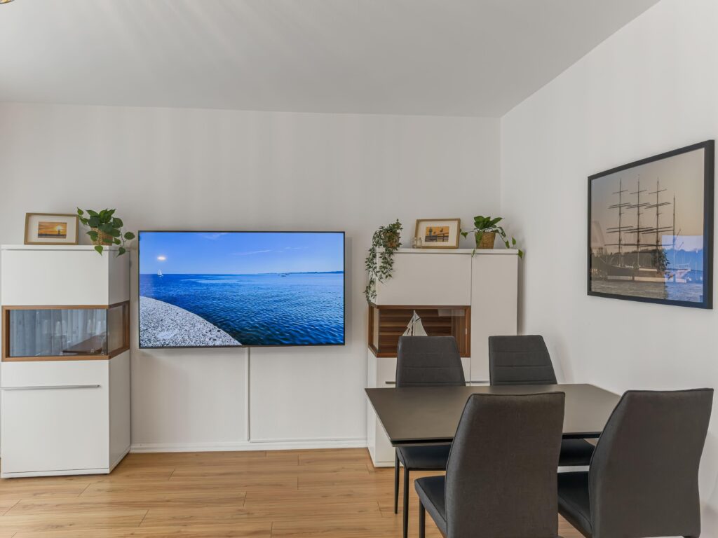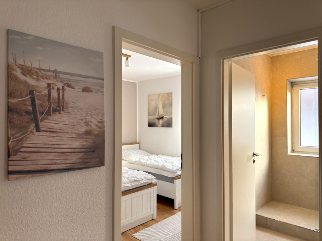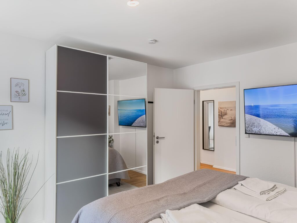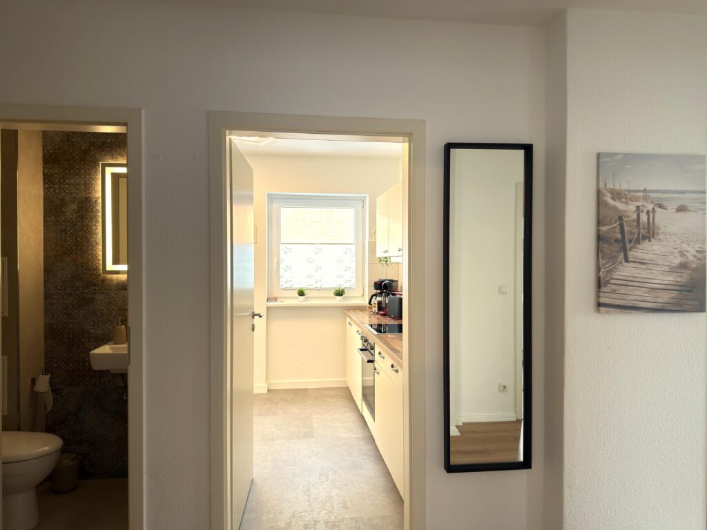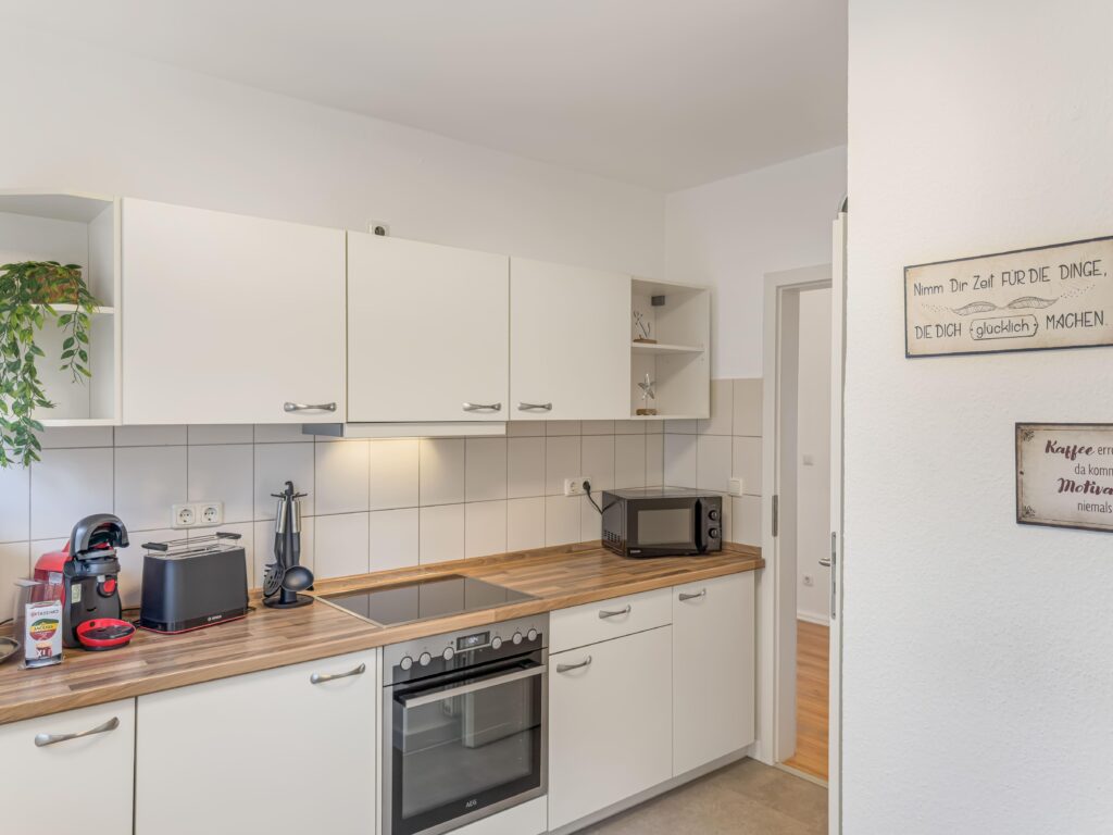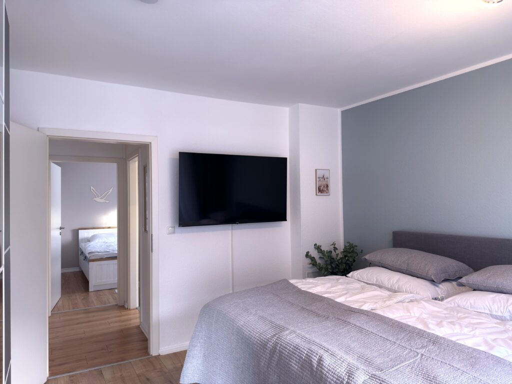 Dieses moderne 3-Zimmer-Apartment im 1. Obergeschoss bietet auf ca. 70 m² viel Platz für einen komfortablen Aufenthalt. Die Wohnung verfügt über zwei Schlafzimmer, eines mit Doppelbett (1,80 m) und TV sowie ein weiteres Schlafzimmer mit zwei Einzelbetten und TV. Das moderne Duschbad ergänzt die praktische Raumaufteilung. Die gut ausgestattete Einbauküche mit Induktionskochfeld, Backofen, Geschirrs...Weiterlesenpüler und Mikrowelle sowie ein separater Essplatz laden zum gemeinsamen Kochen und Verweilen ein. Im Wohnzimmer sorgen Sofa, TV und WLAN für entspannte Stunden. Vom Balkon genießen Sie einen schönen Blick auf die Trave. Dank der zentralen Lage mit Busanbindung direkt vor der Tür sowie Einkaufsmöglichkeiten, Geschäften und Restaurants um die Ecke ist die Wohnung ein idealer Ausgangspunkt. Ein PKW-Stellplatz direkt vor dem Haus steht ebenfalls zur Verfügung.Weniger lesen