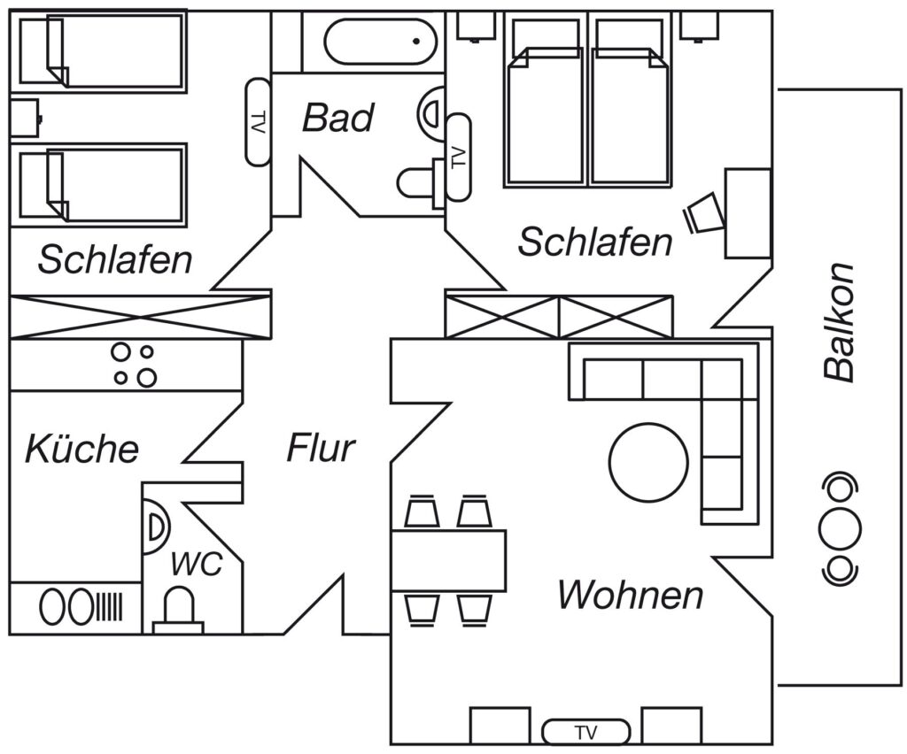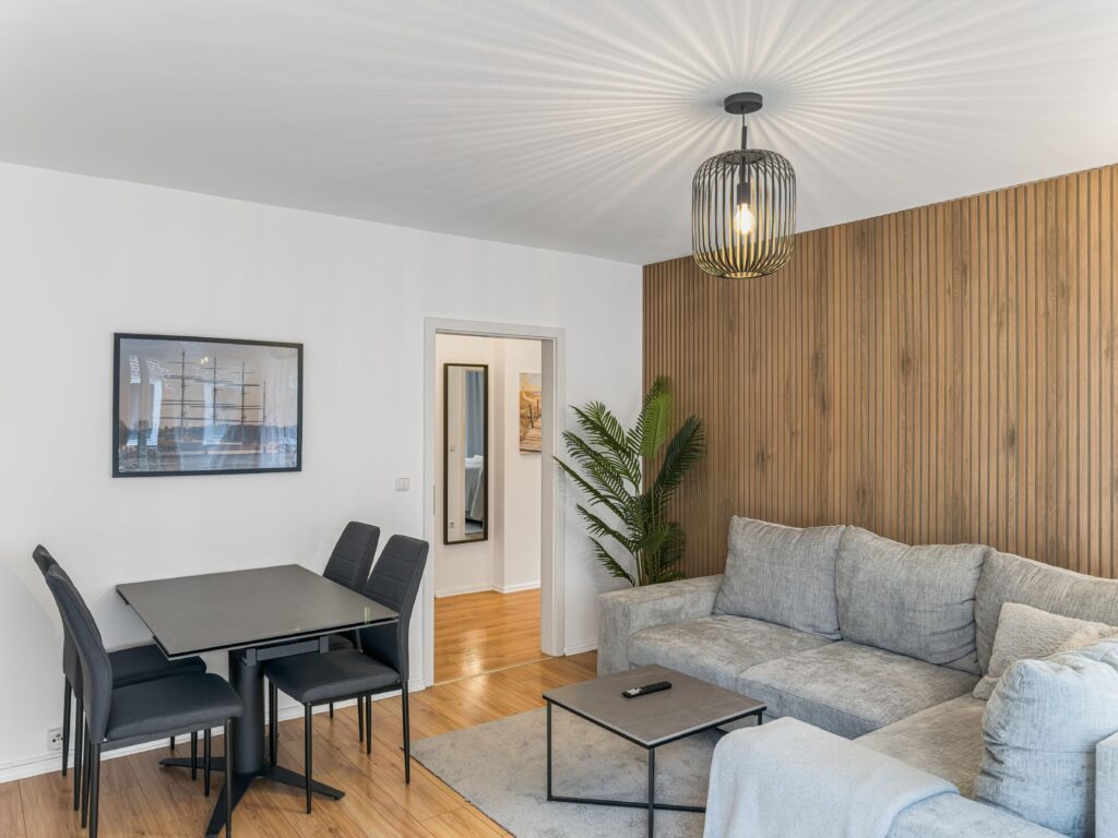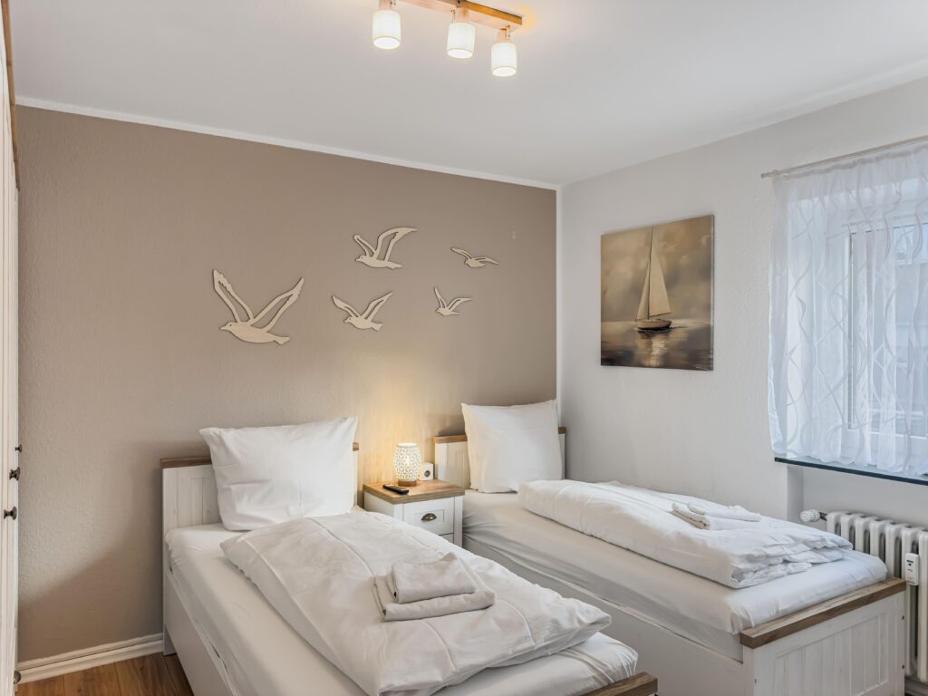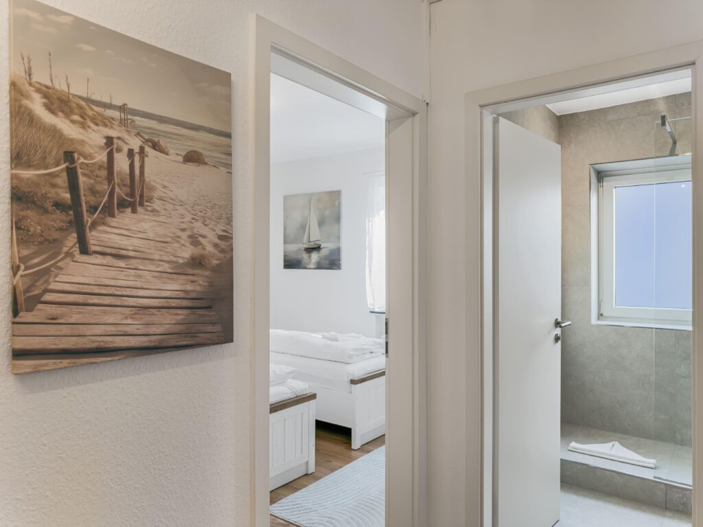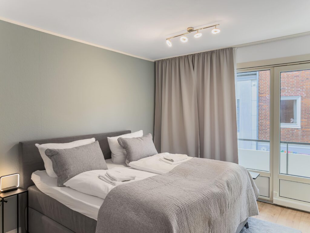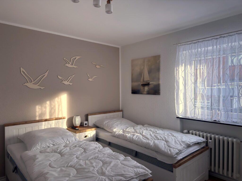 Dieses moderne 3-Zimmer-Apartment im 1. Obergeschoss bietet auf ca. 70 m² viel Platz für einen komfortablen Aufenthalt. Die Wohnung verfügt über zwei Schlafzimmer, eines mit Doppelbett (1,80 m) und TV sowie ein weiteres Schlafzimmer mit zwei Einzelbetten und TV. Das moderne Duschbad ergänzt die praktische Raumaufteilung. Die gut ausgestattete Einbauküche mit Induktionskochfeld, Backofen, Geschirrs...Weiterlesenpüler und Mikrowelle sowie ein separater Essplatz laden zum gemeinsamen Kochen und Verweilen ein. Im Wohnzimmer sorgen Sofa, TV und WLAN für entspannte Stunden. Vom Balkon genießen Sie einen schönen Blick auf die Trave. Dank der zentralen Lage mit Busanbindung direkt vor der Tür sowie Einkaufsmöglichkeiten, Geschäften und Restaurants um die Ecke ist die Wohnung ein idealer Ausgangspunkt. Ein PKW-Stellplatz direkt vor dem Haus steht ebenfalls zur Verfügung.Weniger lesen