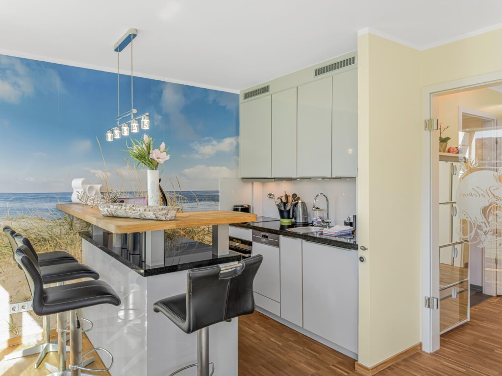 Dieses moderne 2-Zimmer-Apartment im 1. Obergeschoss bietet auf ca. 50 m² alles für einen komfortablen Aufenthalt. Der barrierefreie Zugang per Fahrstuhl und die hochwertige Ausstattung machen es ideal für entspannte Urlaubstage. Im Schlafzimmer finden Sie ein bequemes Doppelbett mit verstellbaren Kopf- und Fußteilen sowie Satelliten-TV. Der Wohnbereich bietet eine vollwertige Schlafcouch für bis ...Weiterlesenzu zwei zusätzliche Gäste, ebenfalls mit Satelliten-TV und einer Stereoanlage. Die gut ausgestattete Küche mit Bar-Tresen lässt keine Wünsche offen, und Highspeed-WLAN sorgt für beste Verbindung. Genießen Sie entspannte Stunden auf dem großen Balkon mit Strandkorb, Gartenmöbeln und elektrischer Markise. Ein Abstellraum für Fahrräder, ein PKW-Stellplatz am Haus sowie ein zusätzlicher Tiefgaragenstellplatz runden das Angebot ab. Fischerei-Hafen, Restaurants, Geschäfte und Promenade sind leicht erreichbar.Weniger lesen