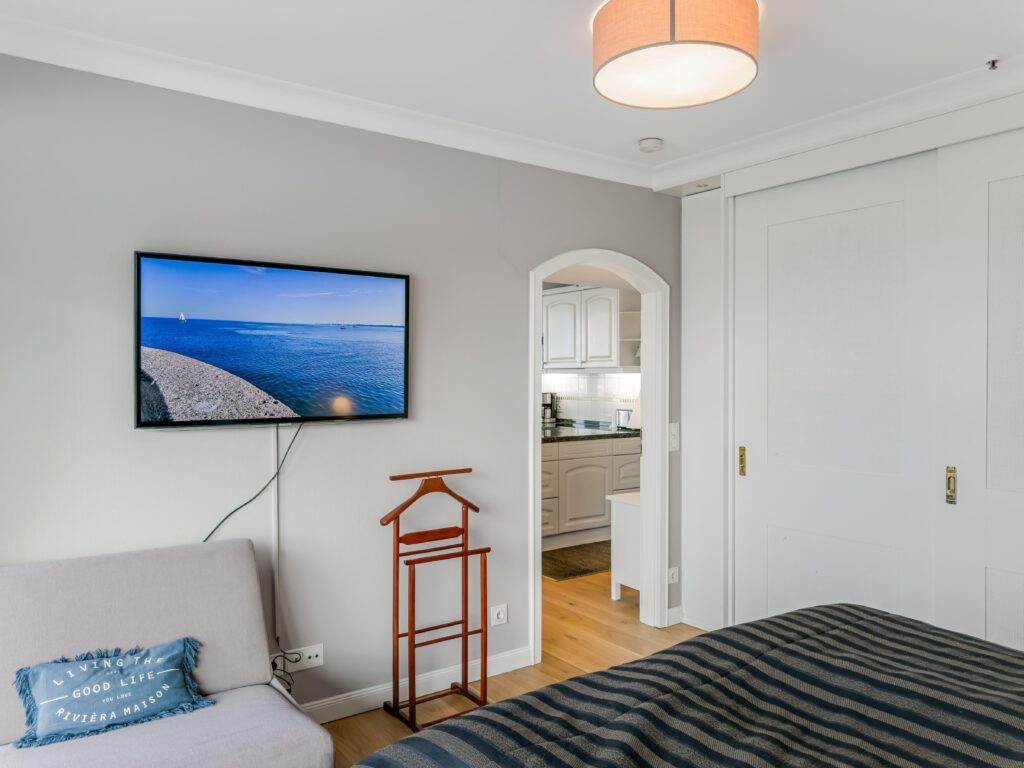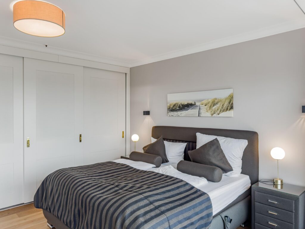 Dieses 2-Zimmer-Eckapartment im 17. Obergeschoss bietet auf ca. 65 m² einen atemberaubenden Ausblick auf den Hafen, die Altstadt und den Strand. Die moderne Ausstattung umfasst ein Schlafzimmer mit Boxspringbett (1,80 m) und TV, ein Duschbad sowie eine offene Einbauküche mit 4-Platten-Ceranfeld, Backofen, Geschirrspüler und Mikrowelle. Der separate Essbereich und das gemütliche Wohnzimmer mit Couc...Weiterlesenh, TV, Radio und WLAN sorgen für zusätzlichen Komfort. Genießen Sie die frische Luft auf dem Eckbalkon oder nutzen Sie die Annehmlichkeiten des Hauses wie Restaurant, Bars, Schwimmbad und Sauna (gegen Gebühr). Ein Tiefgaragenstellplatz rundet das Angebot ab. Direkt am Strand!Weniger lesen